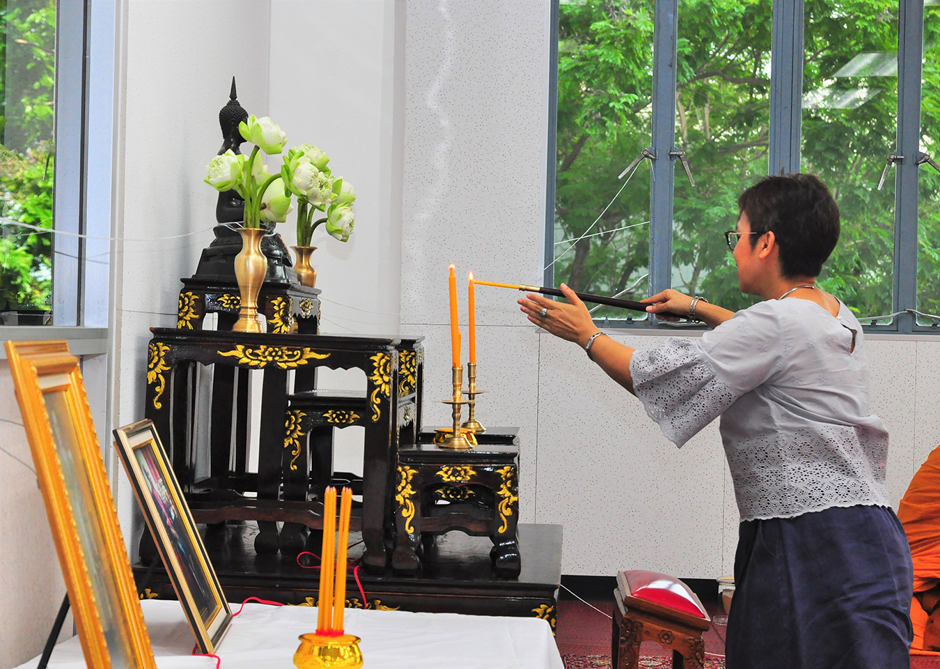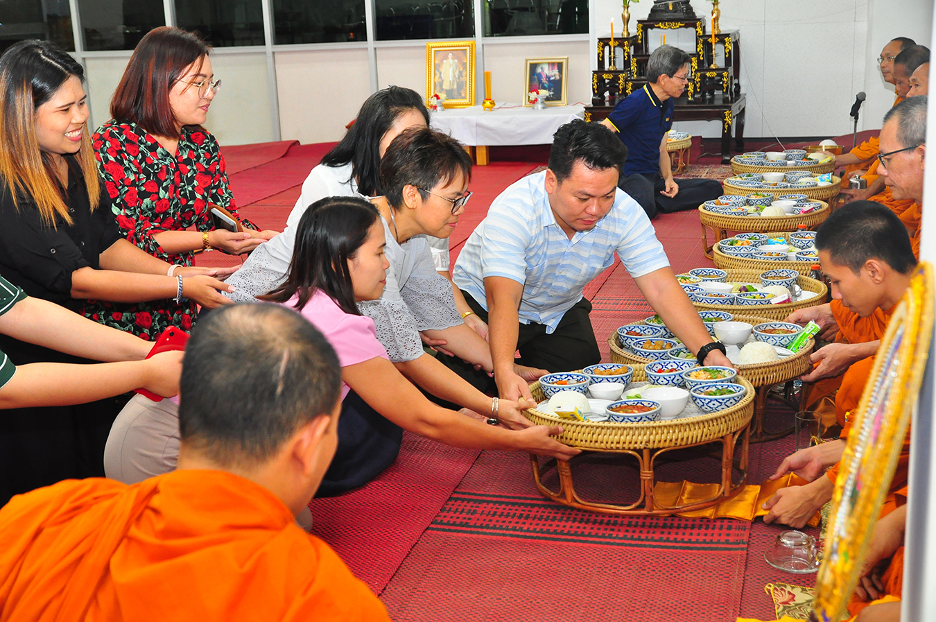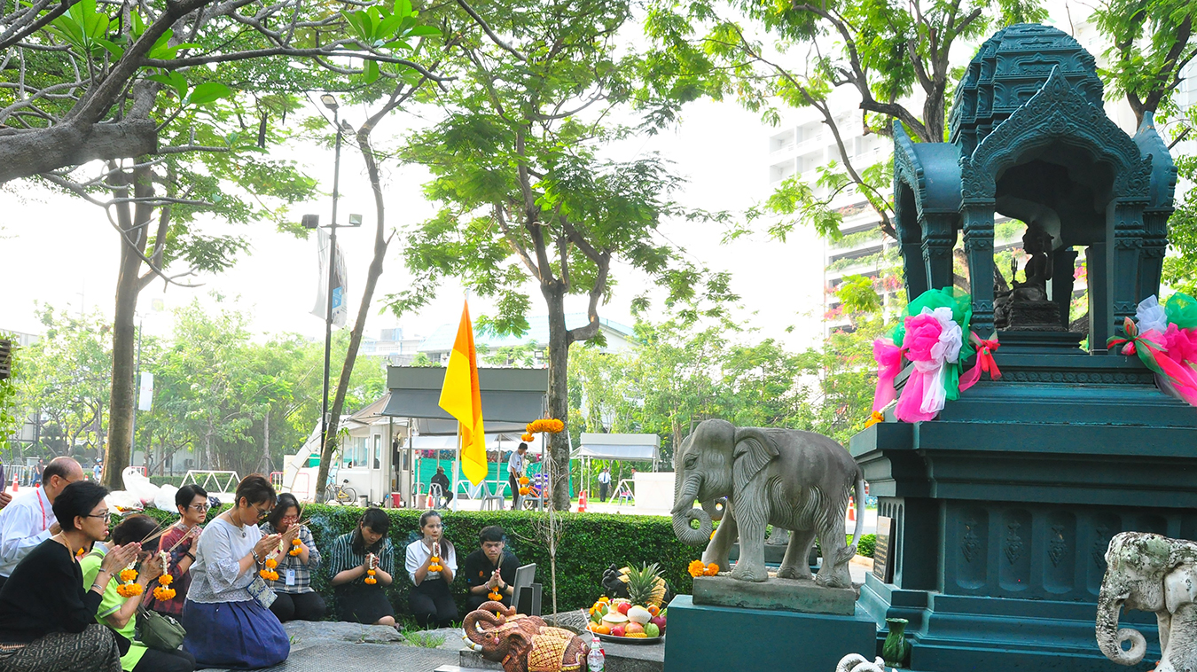 Thursday, 7 November 2019 – School of Liberal Arts (SoLA) organized a Buddhist the 19th anniversary of SoLA establishment. This tradition has been succeeded to promote the morale of personnel and students of SoLA. In the morning, Asst. Prof. Dr. Sasitorn Suwannathep, Dean of School of Liberal Arts, together with all staffs worshiped Somdej Phra Ariyaphrom and King Rama IV Monument. After that, the personnel and the students joined the merit-making ceremony by offering food and giving alms to monks. There was also an Islamic ritual in the afternoon.