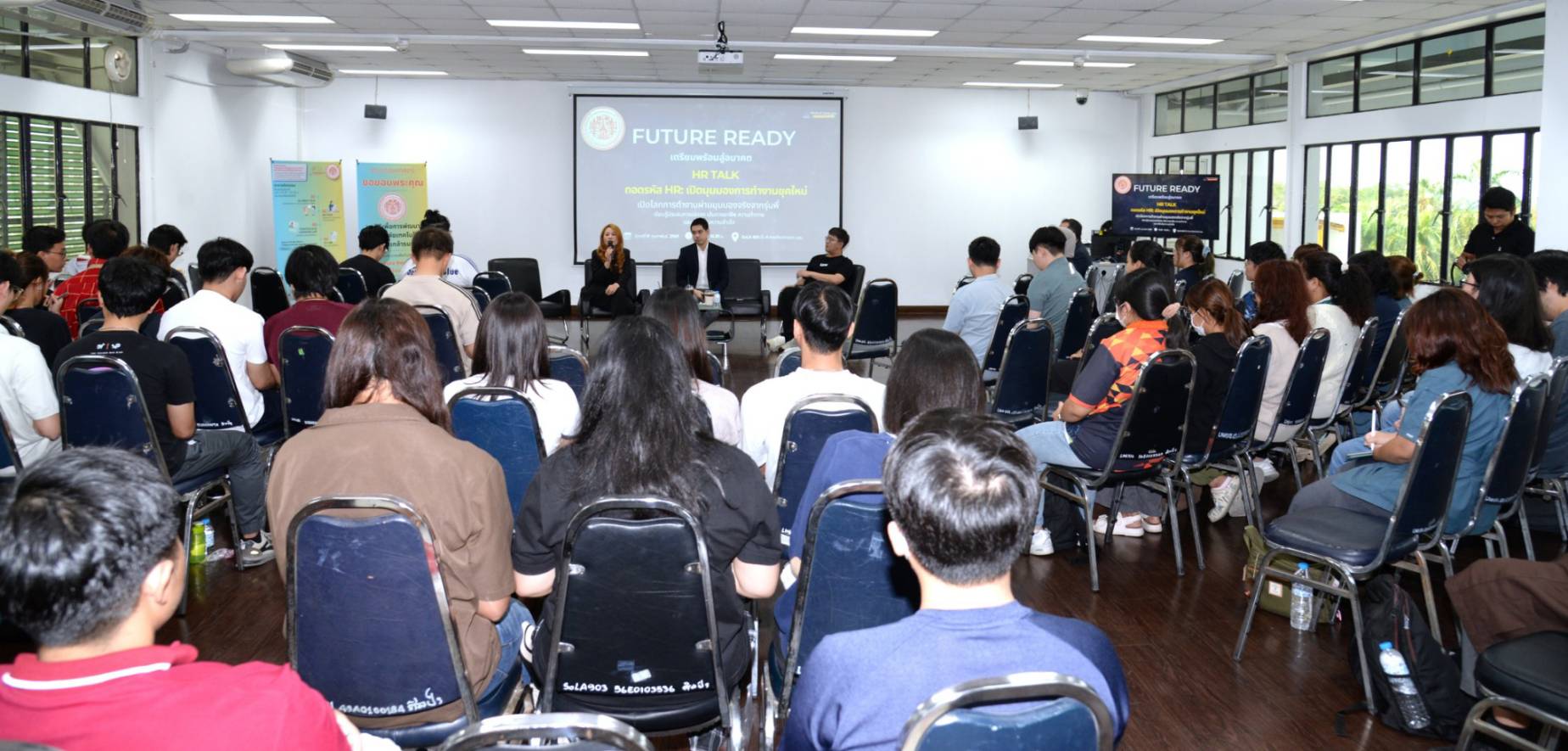 The event featured a distinguished panel of industry experts, including Dr. Rujira Dejsupa (Group Senior Director, Corporate People Service & Admin, Benchachinda Group), Mr. Raviphan Panichcharoen (Vice President, Talent Acquisition Team Lead, UOB Thailand), and Mr. Kao Prommeedech (HR Business Partner Manager, Benchachinda Group). These seasoned HR professionals shared their expertise to help 3rd and 4th-year students prepare for a successful entry into the professional world.