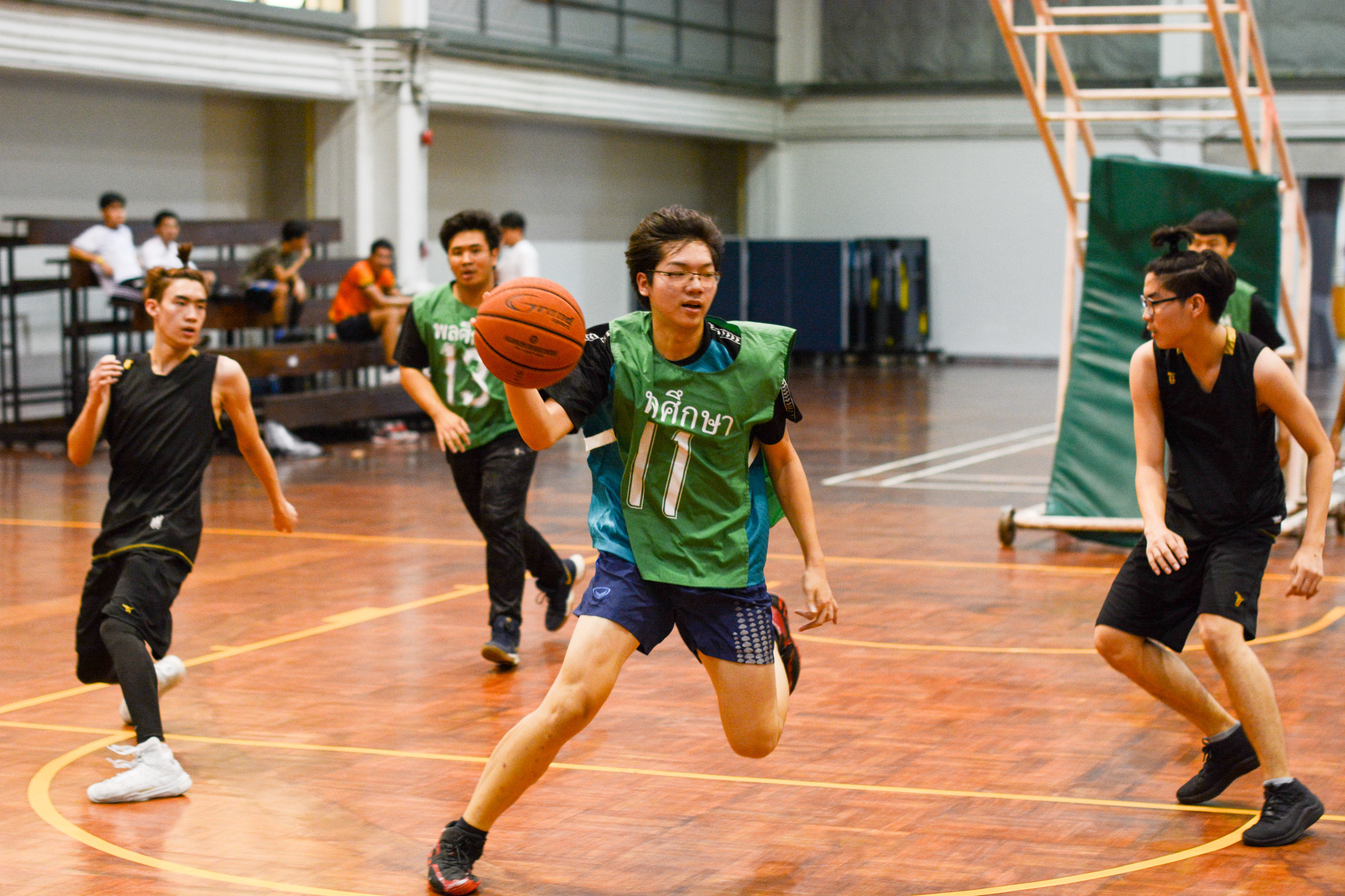 Basketball is a sport used as an instructional activity for GEN 101 Physical Education. It is helpful for physical development, especially deftness and speed of multiple sensory nerves, and promotion of exercise behaviour of the students. Moreover, it can improve mental health when the students encounter the outcome of winning or losing. They can learn to forgive and good sportsmanship from the games. Basketball also creates a sense of unity and a strong relationship among the students. The participants of this competition were 200 students of King Mongkut’s University of Technology Thonburi who enrolled in GEN 101 (Basketball). The competition was divided into two types – Men’s Team and Women’s Team. The prize money of 2,000 baht was awarded to the winning team, 1,500 baht to the first runner–up, and 1,000 baht to the second runner–up.