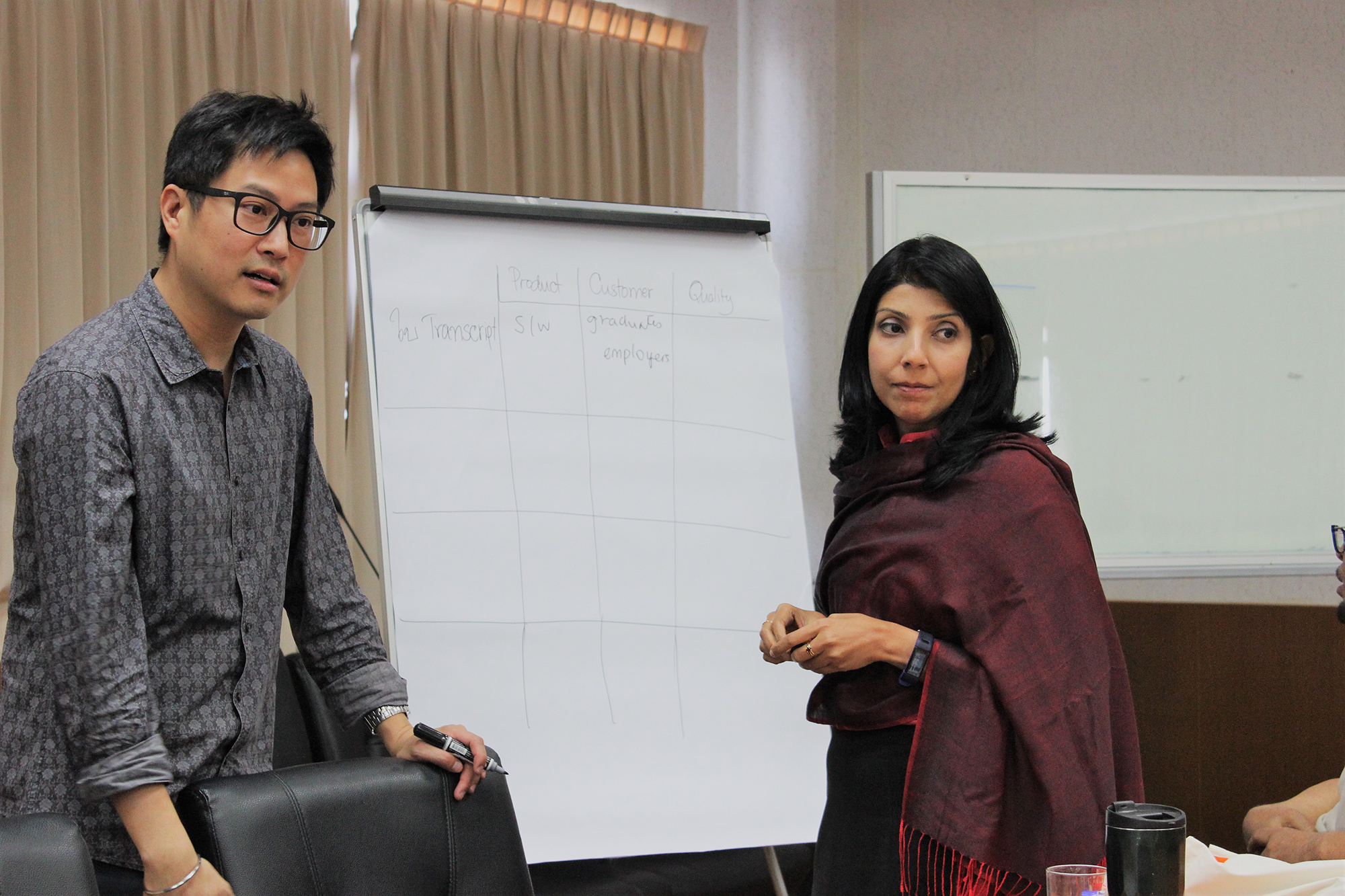 One-day Quality Concept workshop was organised at the School of Liberal Arts, KMUTT, on October 04 2018. Asst.Prof.Dr.Preecha Termsuksawad, Assistant to the President for Quality Assurance and Asst.Prof.Dr. Atipat Boonmoh, School of Liberal Arts; KMUTT ran this workshop to all academic staff. The workshop aimed to provide the preliminary knowledge and information on TQM (Total Quality Management) and EdPEx (Education Criteria for Performance Excellence), PDCA frameworks which can be adapted to teaching and learning intending to reach for performance excellence.