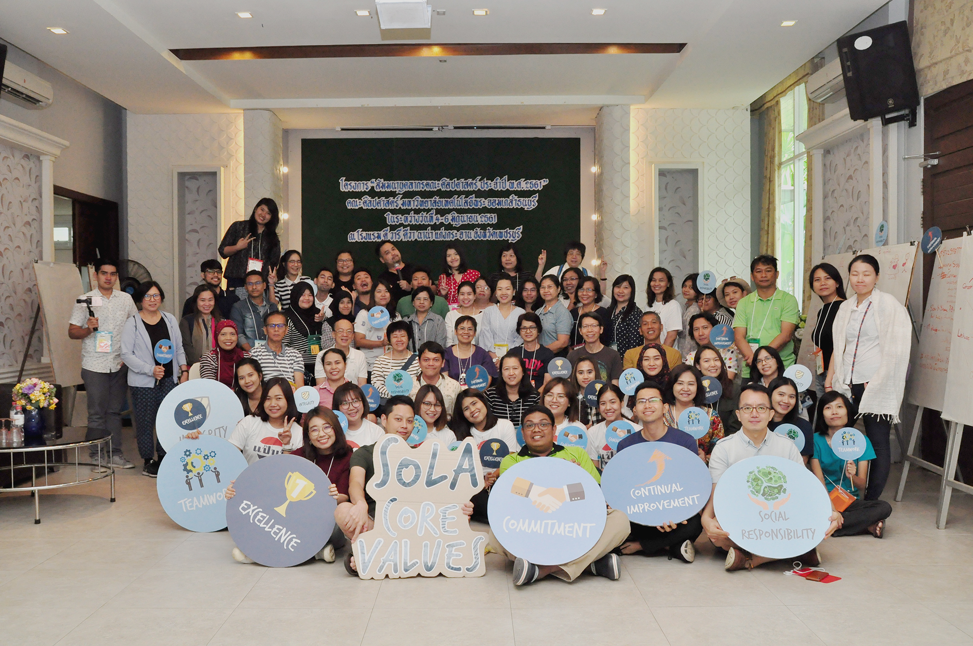 เมื่อวันจันทร์ที่ 4 มิถุนายน 2561 – วันพุธที่ 6 มิถุนายน 2561 คณะศิลปศาสตร์ได้จัด “โครงการสัมมนาบุคลากรคณะศิลปศาสตร์ ประจำปี พ.ศ. 2561” ในวันแรกจัดที่คณะศิลปศาสตร์ มหาวิทยาลัยเทคโนโลยีพระจอมเกล้าธนบุรี ซึ่งมีการเปิดงานสัมมนาฯ โดย ผศ.ดร.ศศิธร สุวรรณเทพ คณบดีคณะศิลปศาสตร์ หลังจากนั้นเป็นการจัดกิจกรรมที่ให้บุคลากรภายในคณะฯ ได้ตระหนักถึงค่านิยมขององค์กรและมีการแสดงพฤติกรรมที่สอดคล้องและเหมาะสมกับค่านิยมองค์กร (SoLA Core Values) ที่กำหนดไว้ ได้แก่ Intergrity, Social Responsibility, Teamwork, Commitment, Continual Improvement และ Excellence โดยทีมกระบวนกรคณะครุศาสตร์อุตสาหกรรมและเทคโนโลยี และเพื่อให้บุคลากรในองค์กรยึดมั่นในคุณธรรมและมีความรับผิดชอบต่อสังคม ตลอดจนการทำงานเป็นทีมและมีความมุ่งมั่น นอกจากนี้มีการจัดกิจกรรมนอกสถานที่ ณ D Varee Diva Nana Kaeng Krachan จังหวัดเพชรบุรี ซึ่งกิจกรรมต่างๆ มีการสอดแทรกค่านิยมองค์กร (SoLA Core Values) ลงไปทุกกิจกรรม เช่น ล่องแพแม่น้ำเพชรบุรี ส่องนกดูผีเสื้อที่บ้านกร่าง เป็นต้น อีกทั้งร่วมกันแลกเปลี่ยนเรียนรู้ นำไปสู่การพัฒนาคณะฯ อย่างต่อเนื่อง