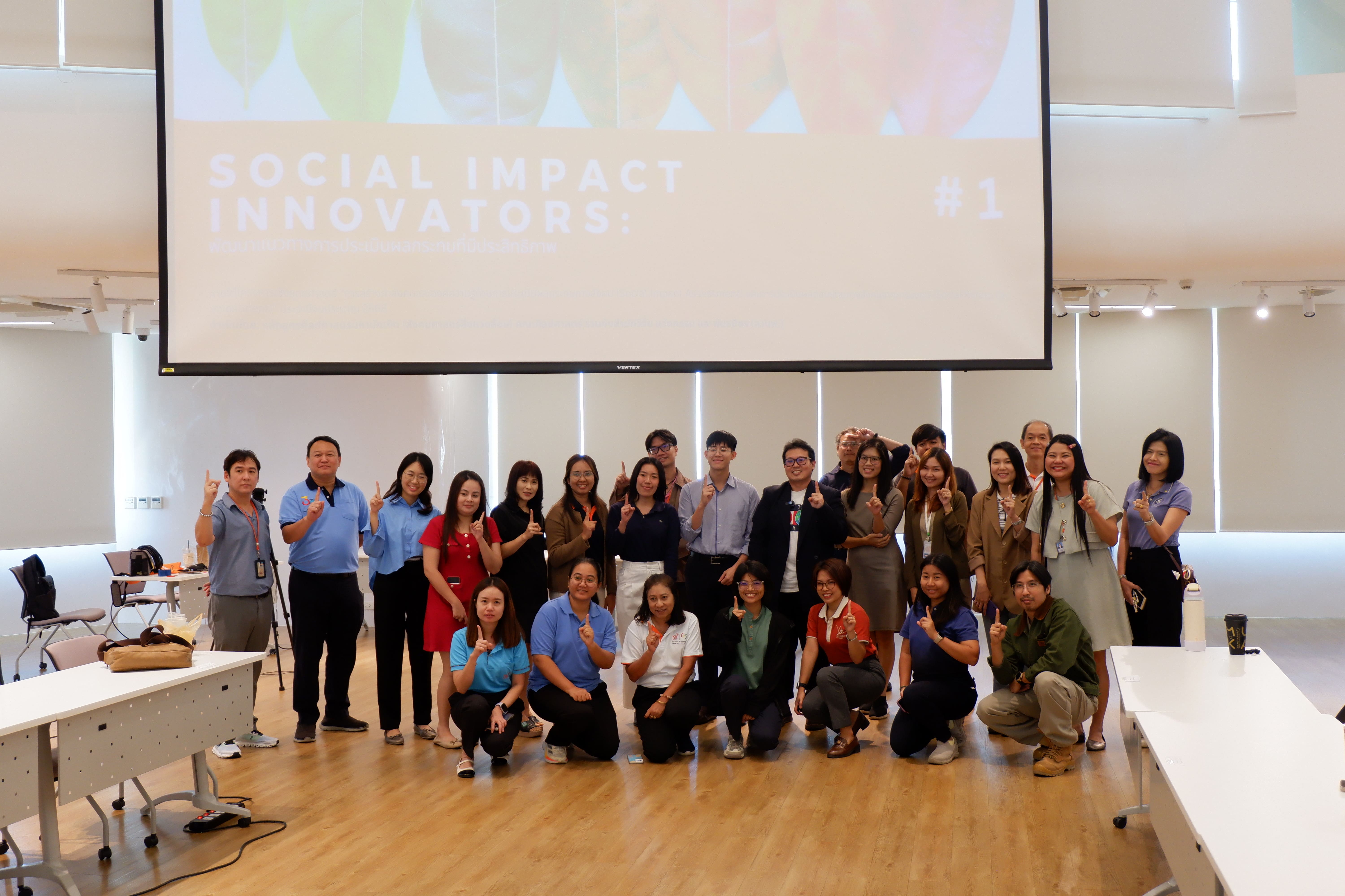 From September 11, 2025, the Master’s Program in Environmental Social Sciences, School of Liberal Arts, King Mongkut’s University of Technology Thonburi, organized a presentation entitled “Social Impact Innovators: Developing Effective Impact Assessment Approaches” (Cohort 1), as well as a closing ceremony the strategic project “Capacity and Knowledge Building in Social Impact Assessment (SIA) and Social Return on Investment (SROI)” for the 2025 fiscal year. The project is led by Dr. Ittisak Jirapornvaree. The event brought together 45 participants, including lecturers, researchers, and support staff from King Mongkut’s University of Technology Thonburi.