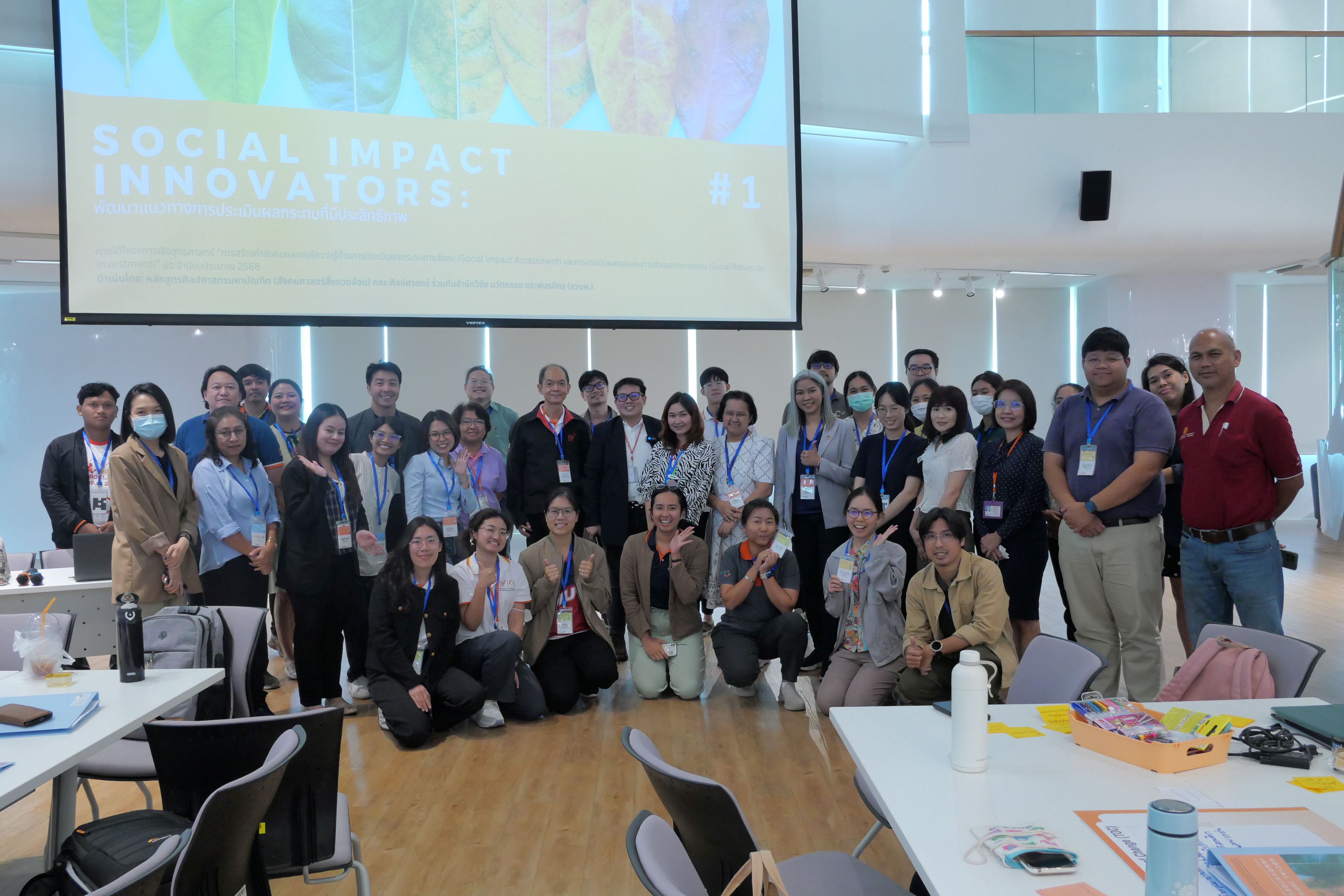 From May 26–28, 2025, the Master’s Program in Environmental Social Sciences, School of Liberal Arts, in collaboration with the Office of Research, Innovation, and Partnerships, King Mongkut’s University of Technology Thonburi, organized a workshop entitled “Social Impact Innovators: Developing Effective Impact Assessment Approaches” (Cohort 1). This was held under the strategic project “Capacity and Knowledge Building in Social Impact Assessment (SIA) and Social Return on Investment (SROI)” for the 2025 fiscal year. The project is led by Dr. Ittisak Jirapornvaree. The event brought together 50 participants, including lecturers, researchers, and support staff from King Mongkut’s University of Technology Thonburi.
