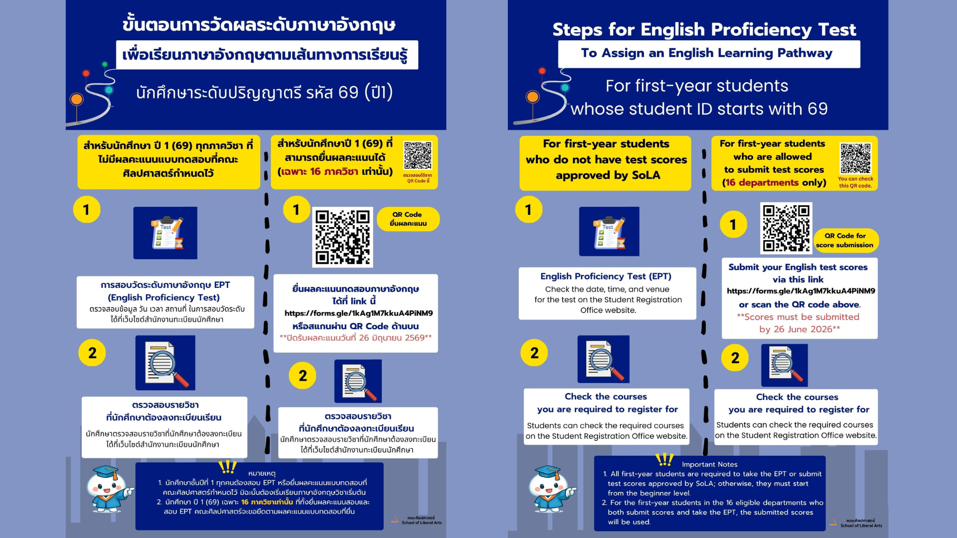 รายชื่อ 16 ภาควิชา ที่สามารถยื่นผลคะแนนเพื่อเทียบระดับภาษาอังกฤษ
