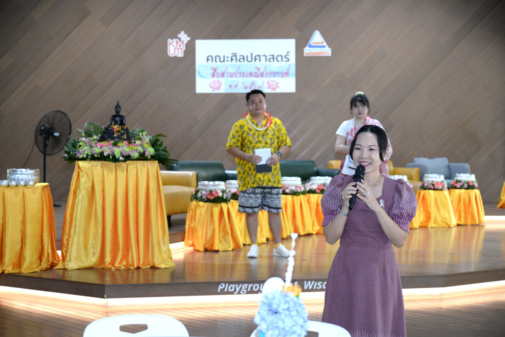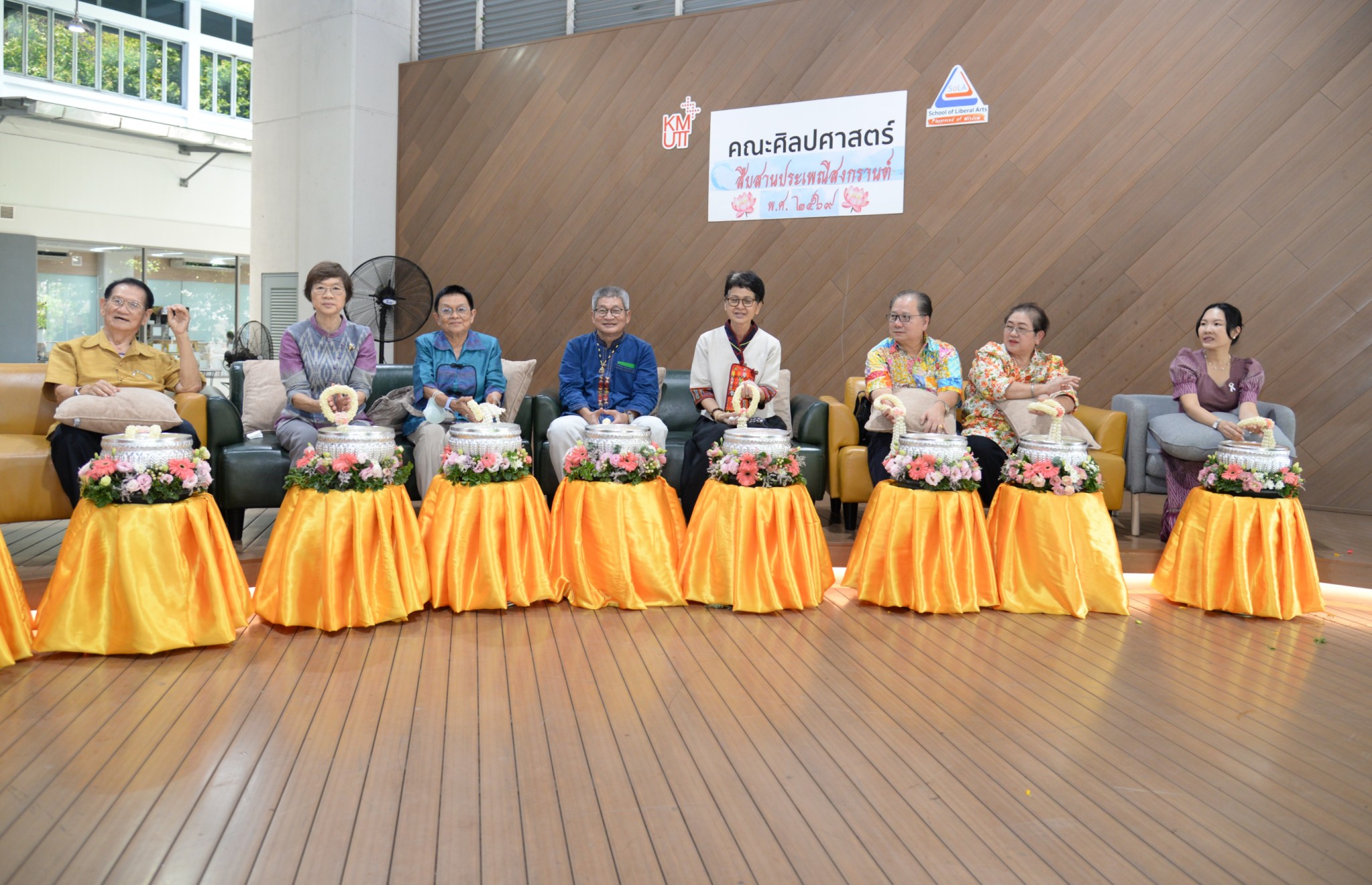 The ceremony was officially opened by Assistant Professor Dr. Natjiree Jaturapitakkul, Dean of the School of Liberal Arts. The school was honored by the presence of retired lecturers, including Rasamee Chutima, Sombat Kingkanjanawong, Nuntana Pichaipattanosopon, Kulwadee Yaemket, Santi Praingam, Wichai Kritprayot, and Kanchong Kritprayot, who graciously offered their blessings to faculty and staff.
