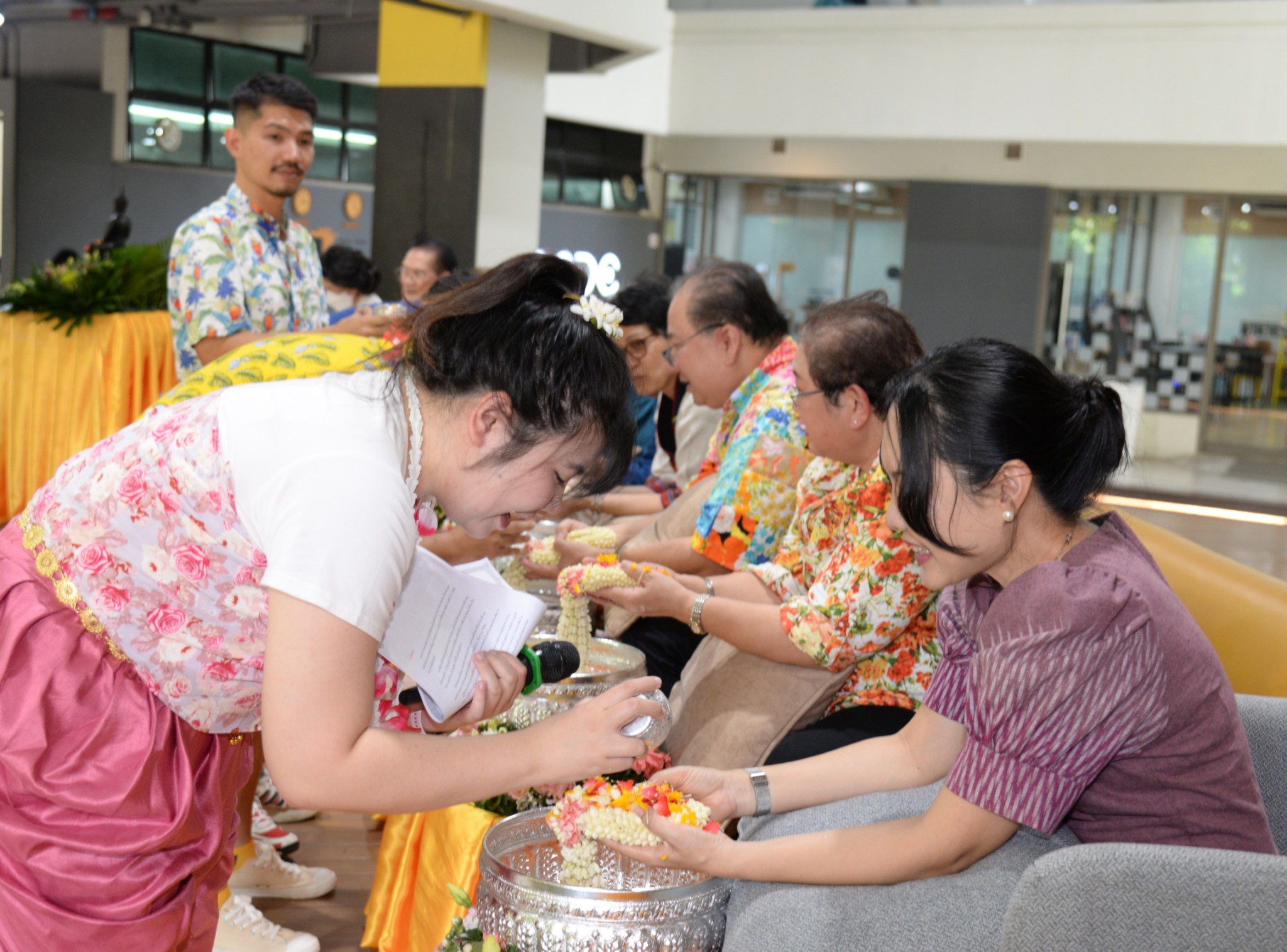 On the occasion of Songkran, the traditional Thai New Year, the School of Liberal Arts held a ceremony on Wednesday, April 8, 2026, featuring the bathing of a Buddha image and a water-pouring ritual to seek blessings from respected elders. The event aimed to preserve Thai cultural traditions and to express respect and gratitude to retired members of the school who have made valuable contributions.