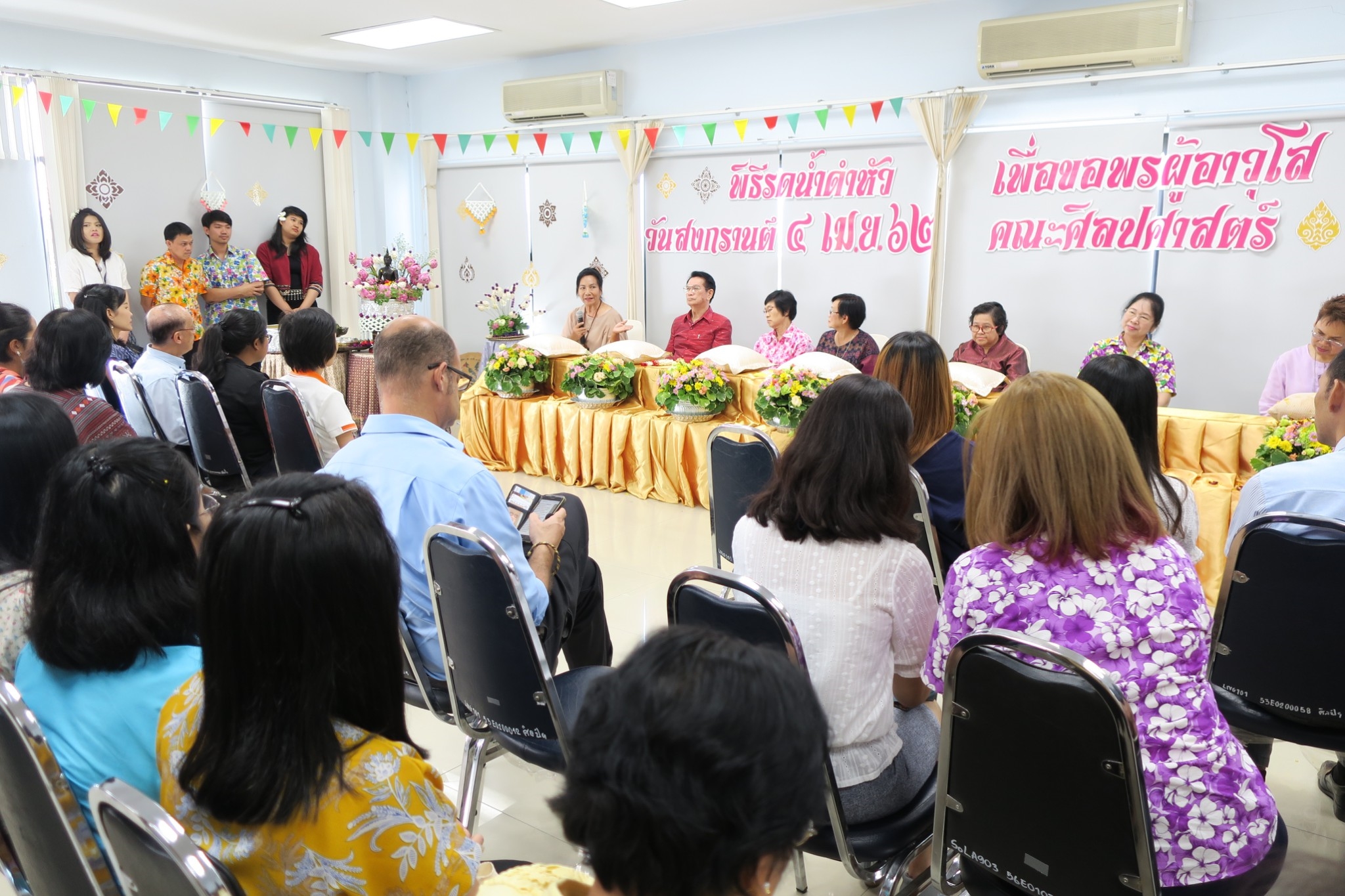 เนื่องในโอกาสวันสงกรานต์ซึ่งเป็นวันขึ้นปีใหม่ของไทย คณะศิลปศาสตร์ได้จัดพิธีสรงน้ำพระพุทธรูป และรดน้ำขอพรอาจารย์อาวุโสของคณะฯ เมื่อวันพฤหัสบดีที่ 4 เมษายน 2562 วัตถุประสงค์เพื่ออนุรักษ์ประเพณีไทยและดำรงเอกลักษณ์ทางวัฒนธรรมอันดีงาม ในการแสดงความเคารพ และความกตัญญูกตเวทิตาแด่อาจารย์อาวุโสผู้มีพระคุณที่ได้สร้างคุณประโยชน์ให้คณะฯ โดยมี ผศ.ดร.ศศิธร สุวรรณเทพ คณบดีคณะศิลปศาสตร์ เป็นประธานเปิดงาน ทั้งนี้ คณะฯ ได้รับเกียรติจาก ผศ.วรรณี ใจบริสุทธิ์ อ.สมบัติ กิ่งกาญจนวงศ์ อ.นันทนา พิชัยพัฒนโสภณ อ.กุลวดี แหยมเกตุ ผศ.ชฎา กองจันทร์ และรศ.ดร.ริเรืองรอง รัตนวิไลสกุล อาจารย์อาวุโสมาร่วมงานและให้พรอันเป็นสิริมงคลแก่บุคลากรและนักศึกษาของคณะฯ นอกจากนี้ยังมีการมอบรางวัลให้กับบุคลากรและนักศึกษาที่สร้างชื่อเสียงให้แก่คณะศิลปศาสตร์