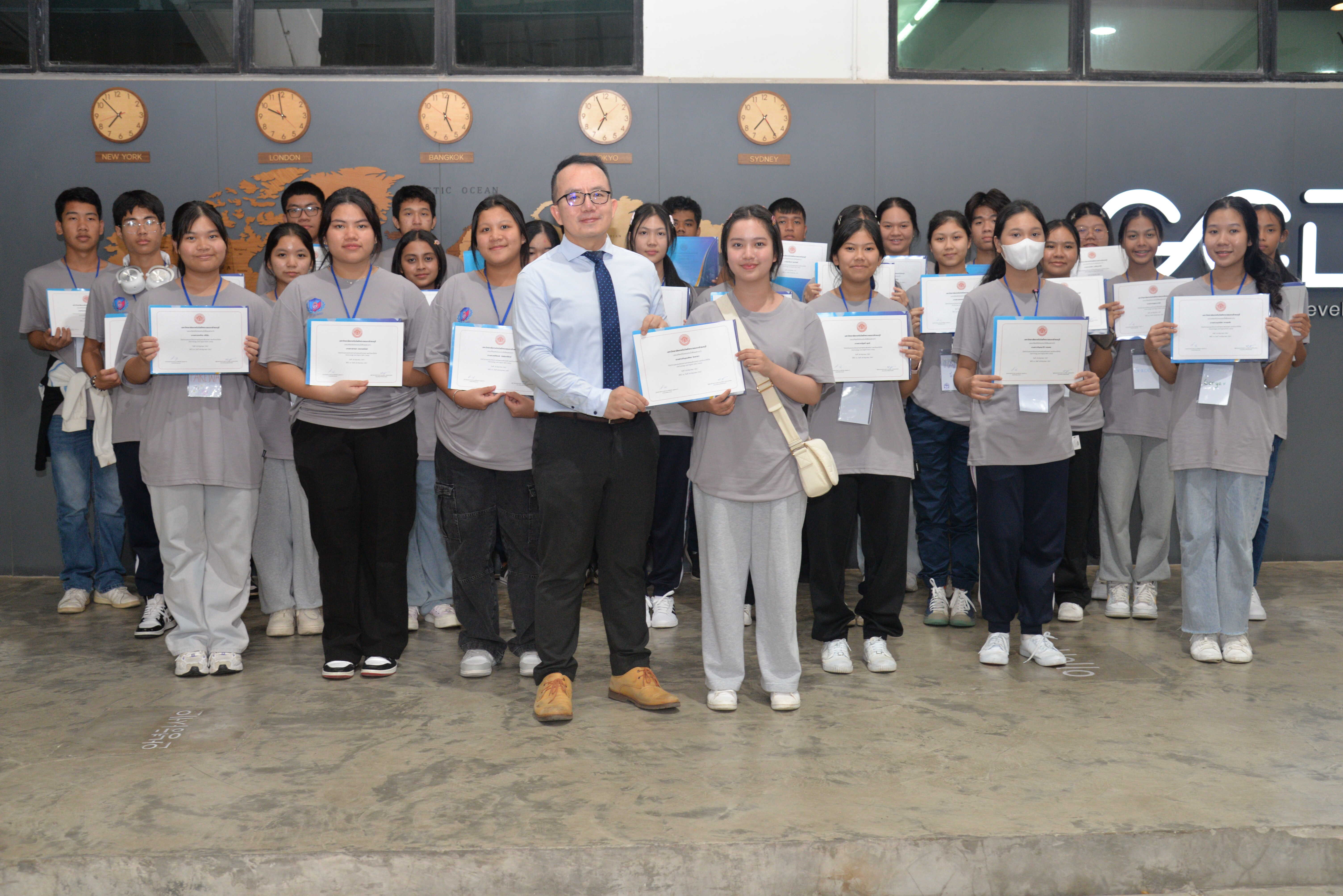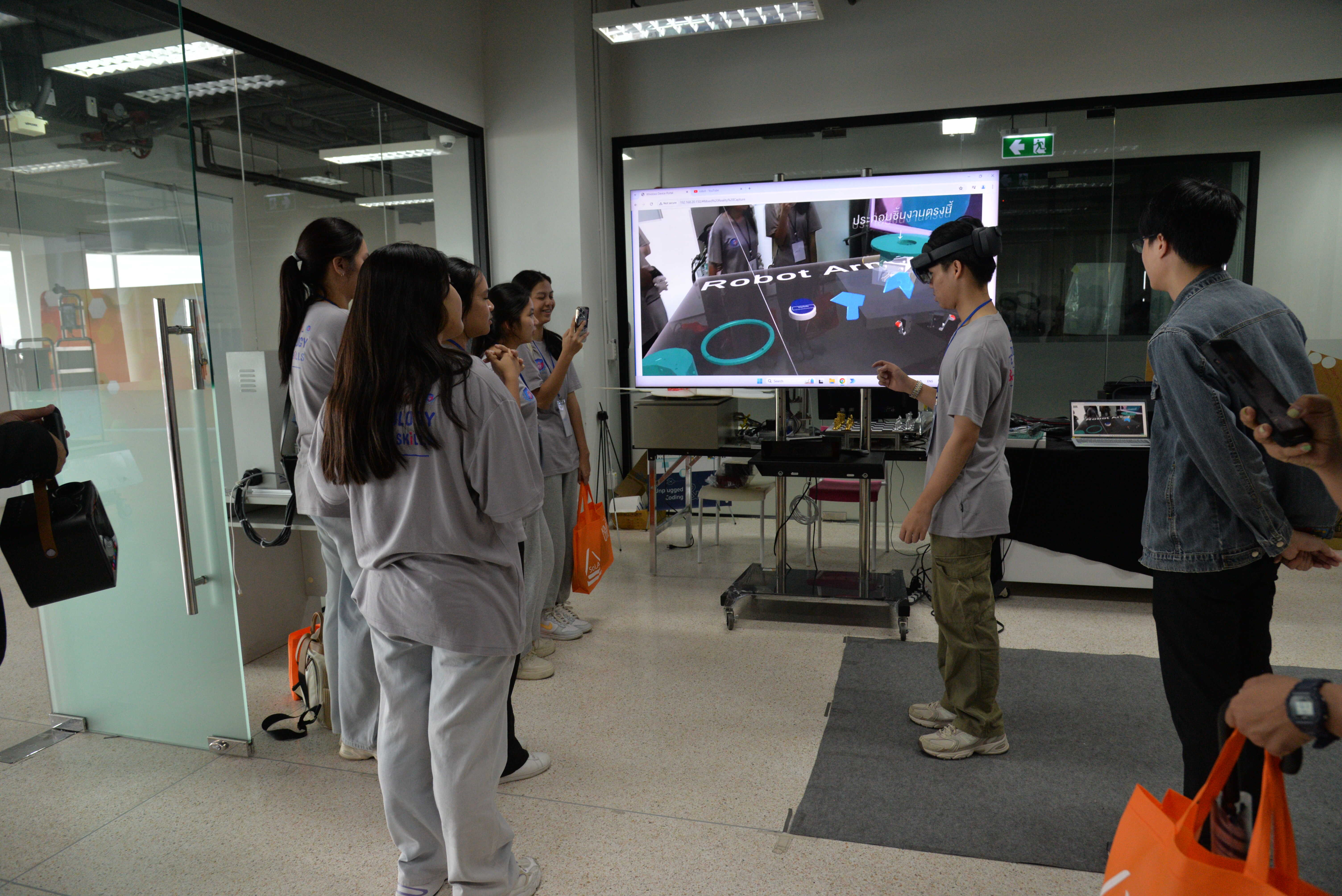 The students also visited the Institute of Field Robotics (FIBO) to gain hands-on experience with AI applications in robotic innovation through four learning stations:1. AR (Augmented Reality) Station: Using technology to combine the real and virtual worlds.2. Smart Factory Station: Learning to control machines in a smart factory through remote control.3. Interactive Aquarium Station: Watching 3D sea animals come to life in the Interactive Virtual Aquarium. 4. Robotic Arm Station: Learning to control the basic functions of a robotic system or mechanical arm.