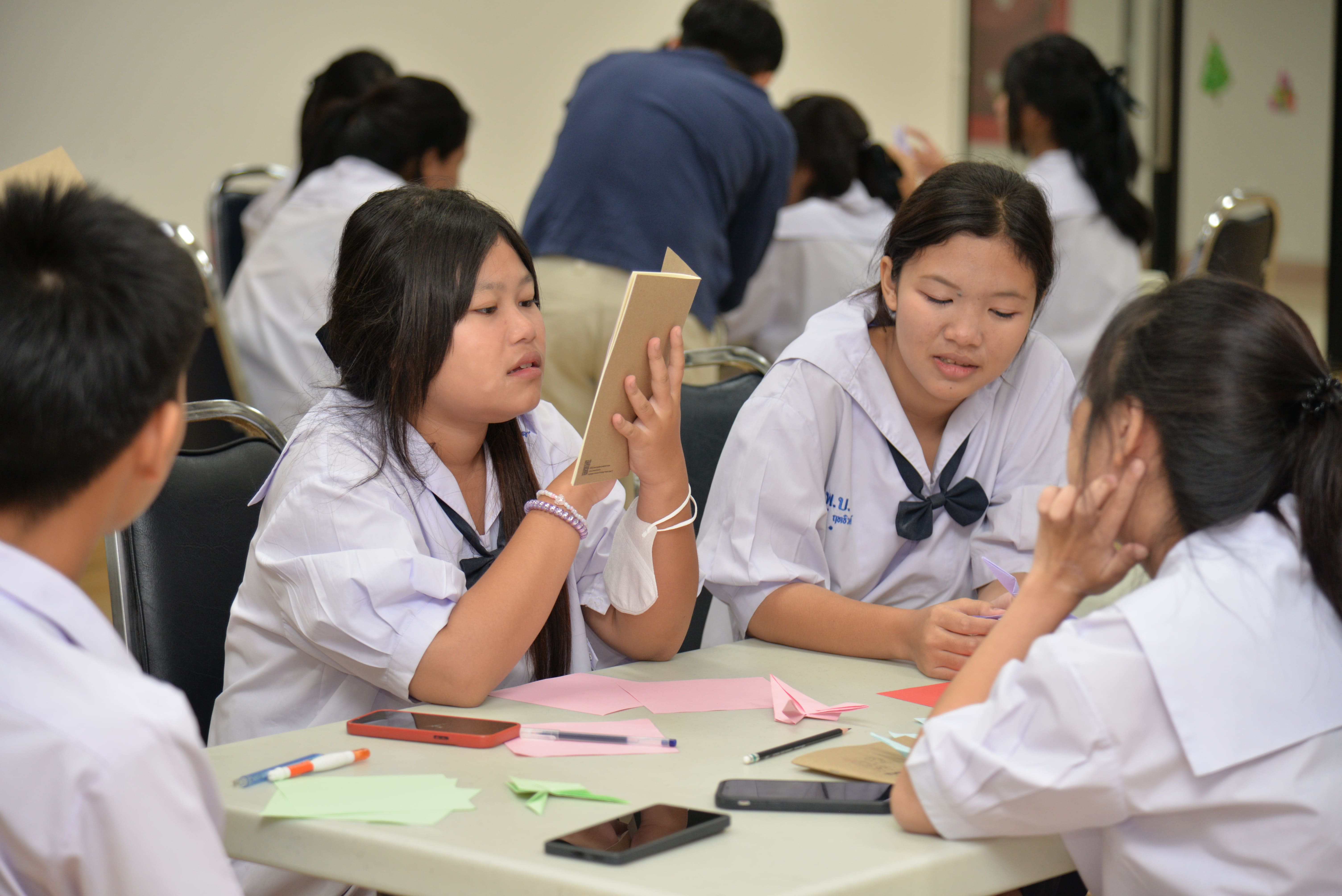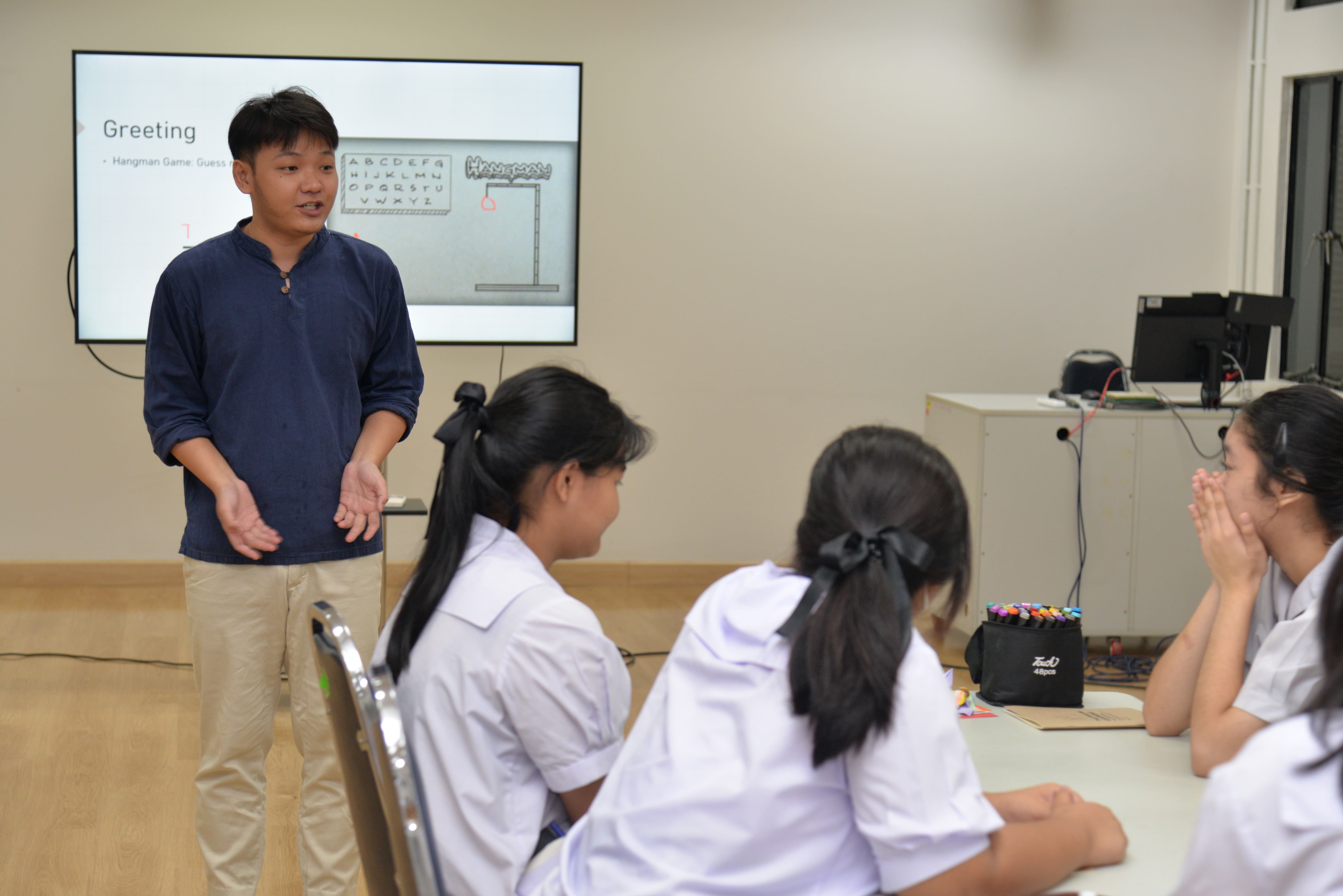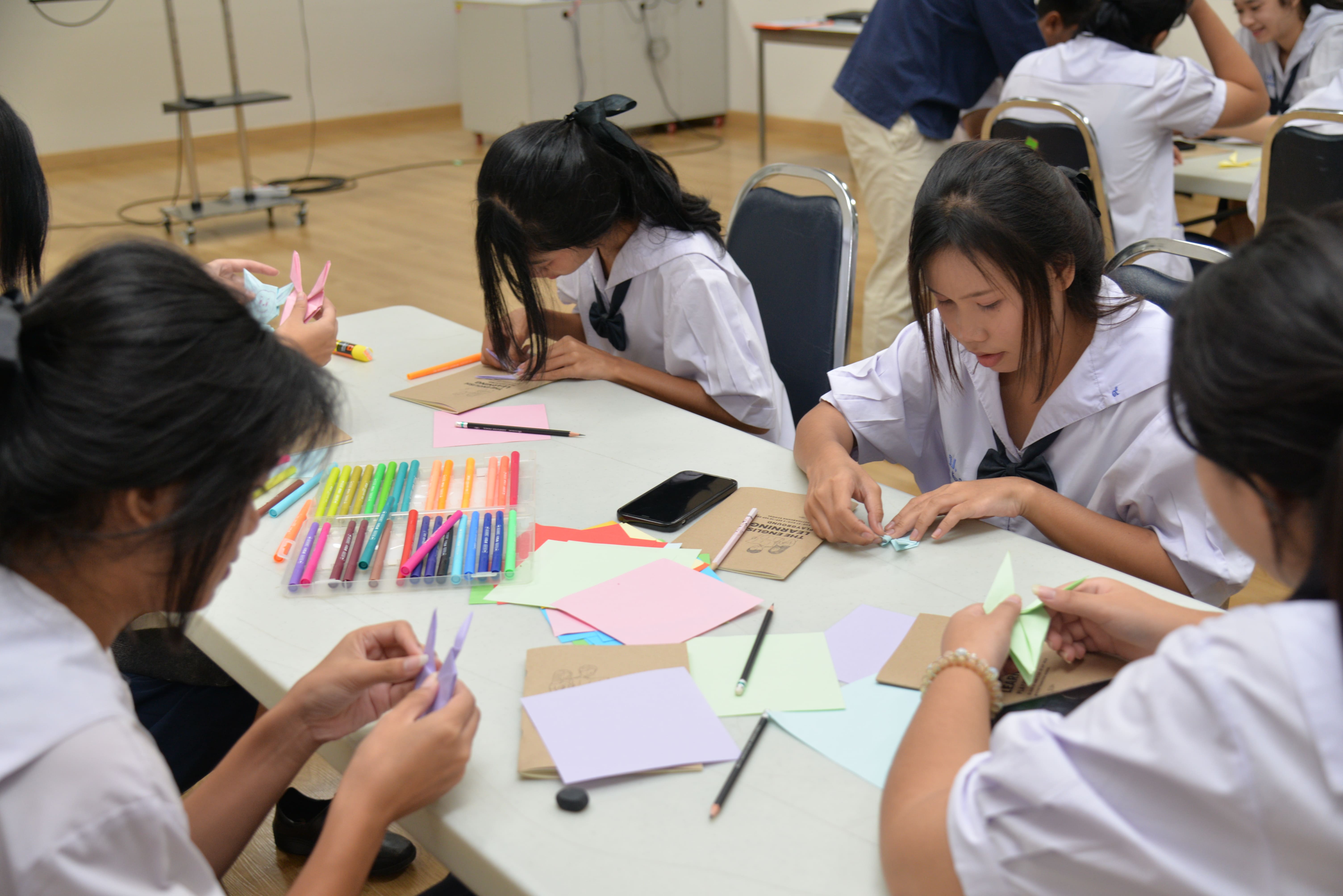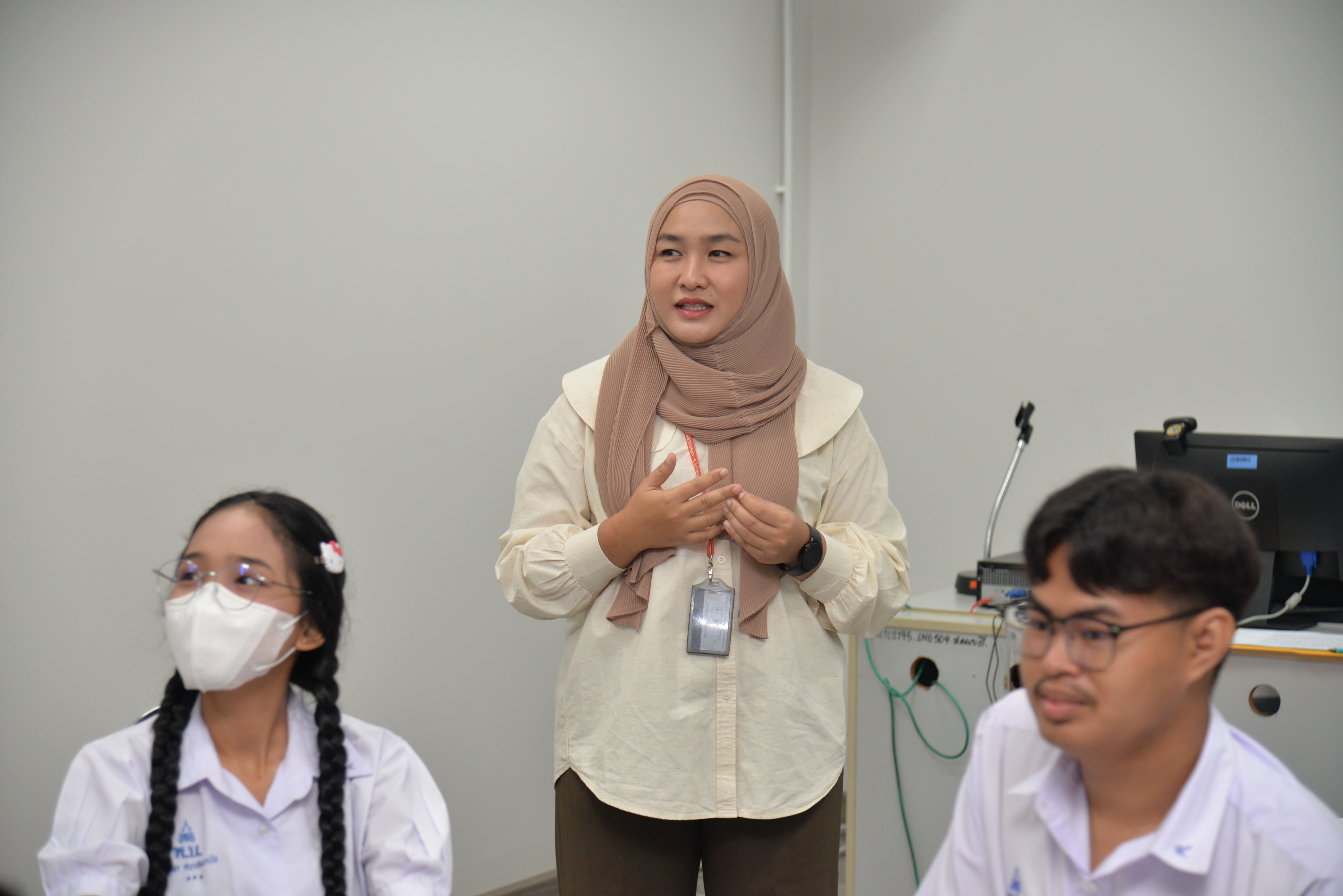 The Global Competence Development Centre (GCDC), under the School of Liberal Arts at King Mongkut’s University of Technology Thonburi, organized an English language development activity called “The English Learning Playground” for 59 students from Wat Phutthabucha School, specifically those in Grade 9 and Grade 12. The event was honored by Asst. Prof. Dr. Natjiree Jaturapitakkul, Associate Dean for Global Competence Development, School of Liberal Arts, who welcomed the school’s administrators, teachers, and students. The opening remarks for the English development activity were delivered by Mr. Norapat Singnual, Deputy Director of Academic Administration at Wat Phutthabucha School, who also gave words of encouragement to the participating students.